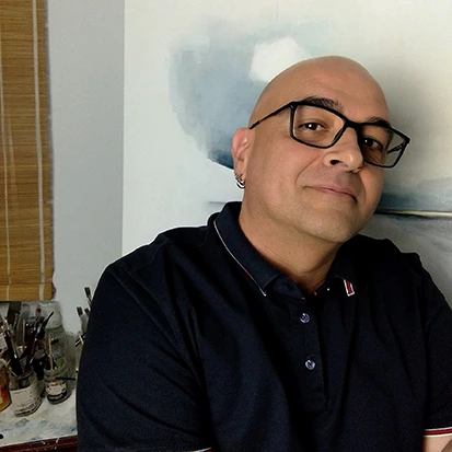 Mi práctica artística se centra en la descomposición de narrativas lineales, creando composiciones donde lo figurativo y lo abstracto coexisten en tensión constante. Los paisajes, tanto interiores como exteriores, funcionan como metáforas de estados emocionales y procesos mentales, recreando las paradojas que nos sostienen en equilibrio.